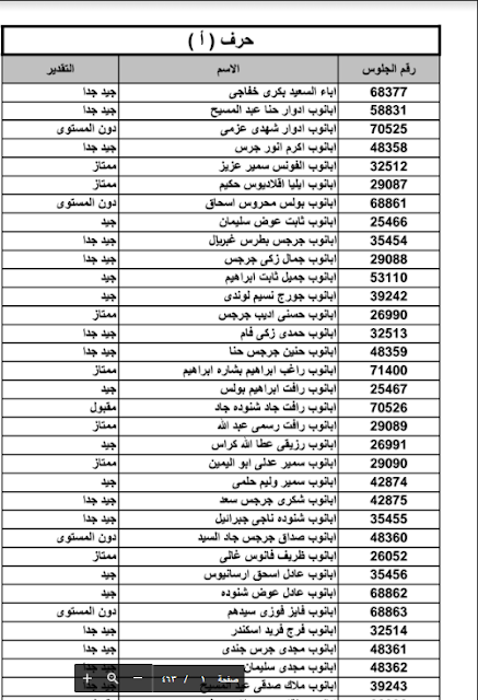 وفيما يلي كشوف نتائج الاختبارات التحريرية وفقاً للأحرف الأبجدية في ضوء ما ورد إلينا من نتائج.